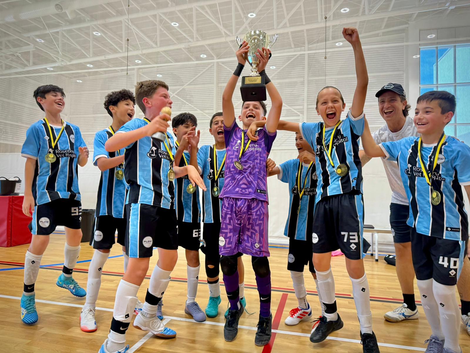 Flow squads trains once a week and plays in local competition, Sydney Super League, on Saturday afternoons once a week.